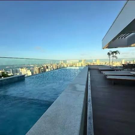 プールを提供するBeach Class 602 - 1 Bedroom Apartment 2 Beds フォルタレザは、ポンテ ドス イングレーゼスから徒歩で25分くらいに位置しています。 WiFiと無料の専用駐車場は、顧客に必須の設備のひとつです。